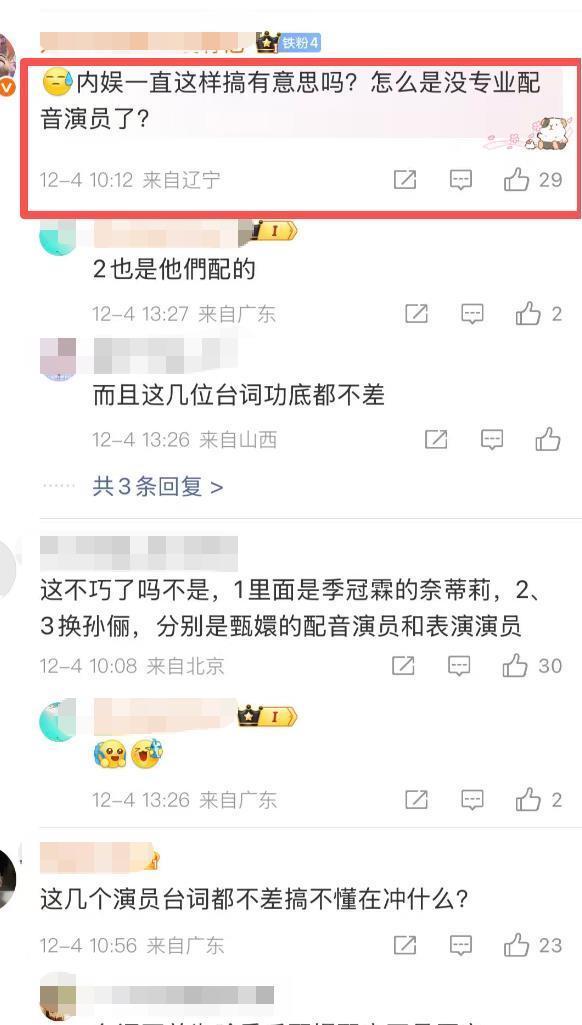 总体来说,争议还是不小的。 有网友们觉得,能不能换一些专业的配音演员,内娱这样搞,就很没有意思了。 再说了,孙俪曾经演的《甄嬛传》,都用的是季冠霖的配音,如果自己的原声优秀的话,就不需要用别人的音了吧。