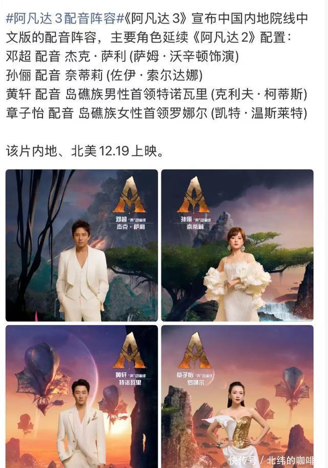 但这么多年来,《阿凡达》虽然精彩,但剧情上的套路化也是短板了,特别是第二部,人物形象的扁平,动机的不合理也让电影充满了争议。 而第三部,根据看过首映的观众反馈,有让人眼前一亮的地方,但剧情方面的短板也是存在的。 大家都知道,好莱坞电影引入到了中国,还是要进行中文配音的,毕竟有不少观众们带着小孩观看,没有配音的话孩子们很难理解。 那《阿凡达3》的配音演员都有哪些人呢。 和大家想象中的不同,这一次不是专业的配音演员了,而是影视演员。