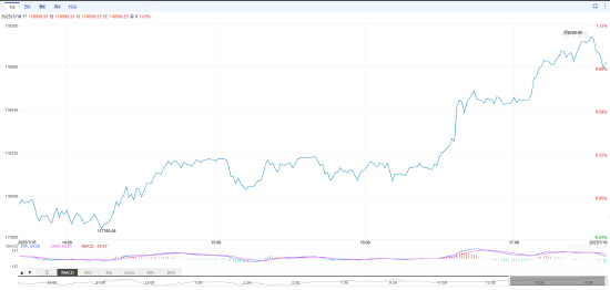 5策略 快讯|比特币突破119000美元,日内涨幅达到2.2%