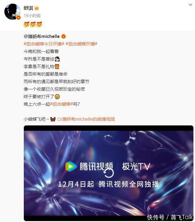 然而就在12月4号的时候,她还在自己的社交平台账号上发了一条最新的动态,是转发陈妍希的一条宣传视频。 主要就是为了宣传陈妍希的新剧,而舒淇并没有参演这部剧,只是帮好朋友宣传一下而已。